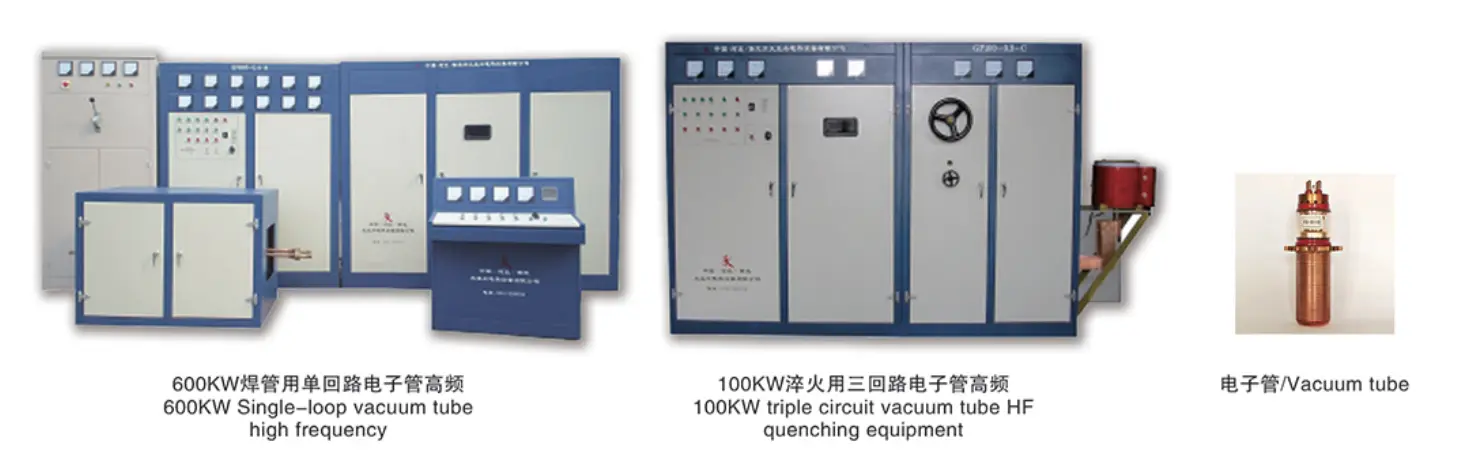 Aşağıdaki fotoğraflar 600KW tek döngülü vakum tüplü yüksek frekanslı ve 100KW üç devreli vakum tüplü HF söndürme ekipmanıdır.